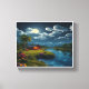 Med den här mononbelysta stugan vid flodväggen. Med en glödande fullt, drömmande natt himmel, berg med snö och en mysigt stuga omgiven av lush grey och blommor skapar den här grafiken en lugnande höger på väggen. Perfekt för levande rumsmur, sovrumskonst eller kontorsinspiration. biet blandar naturlig elegans med fridfull charm, skapar det som ett idealiskt tillägg för älskare och hemmakonatorer som söker ett unikt biet i påstående.
