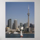 Toronto, Ontario-hamnen och skylinen på en solig dag, med rödsegelbåt i förgrunden. Tillgänglig i alla storlekar och yta
