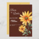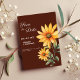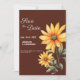 Fira era speciella inbjudningar till land-stil Bröllop spara datum med vår elegant torvbrun, mintfärgad grönt och orange land-blommigt-bröllopsinbjudan. Vår design har våra handmålade vattenfärgade solrosor av guldfärgad gult i eleganten land-stil är vackert designad för att skapa denna enkla inbjudan till elegant bröllop. Anpassa den här designen med egen information om meddelande och personlig. Alla designer skrivs ut.