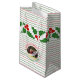 Holly berry garland och rött, grönt rand julsäck. Framsidan har tunn röd färg och grönt rand med ett gyttja av kullbär i mitten och en cirkel med ett familjefoto, texten "glad helg" och ditt namn. Fotografi © Storytree Studios, Stanford, CA
