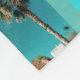 Ett färgfoto av en spansk stad med traditionellt byggnad, ett halvmåns måne och ett handflatan träd. Valencia, Alicante.