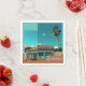 Ett färgfoto av en spansk stad med traditionellt byggnad, ett halvmåns måne och ett handflatan träd. Valencia, Alicante.