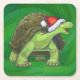 Tortoise i Santa Hat On Grönt Underlägg Papper Kvadrat
