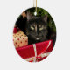 Tortoiseshell, eller tortie, katt under katten Julgran älskar julprydnad helgdag