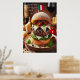 Indulge i Toskas oemotståndliga arom med detta frestande italienska Truffle Burger. En sminkad nötköttsbit som är infekterad med aromatisk svart tryffelolja är lagrad med grädda färska mozzarella, tomater som torkas med sol och som är fyllda med smak, och doftande basililja, som alla är kapslade i en tuff ciabattroll. En liten italiensk flagga lägger till en liten bit av italiensk elegans, medan en bakgrund av åldras parmesan och ett glas bra vin kompletterar detta italienska mästerverk för kulinarier.