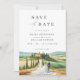 Fira din kärlek i den förtrollande skönheten i Toscana med vår exklusiva Tuscany Dream Wedding Save The Date. Denna design fångar essensen av Toscana med sin hisnande akvarellmålning av den ikoniska Toscanas silhuett, komplett med böljande kullar, eleganta cypresser och en charmerande villa i fjärran. Anpassa din design enkelt genom att redigera texten så att den inkluderar din bröllopsinformation. Välj mellan ett urval av typsnitt och färger för att perfekt komplettera ditt bröllopstema och stil. Transportera dina gäster till de romantiska landskapen i Toscana med denna fantastiska inbjudan. Sätt tonen för ditt drömbrollop och bjud in dina nära och kära att dela i magin på din speciella dag mitt i Toscanas pittoreska skönhet.