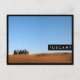 Snyggt vykort för en liten grupp cypress träd i en liten skog på den rullande backe i Val d'Orcia, Toskana, Italien med ett svart kant och texten: "Toscana".
