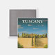 Tuscannas vackra landsbygd och lilla städer är ekon i vintage resor poster på en magnet för kylskåpet.