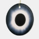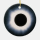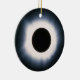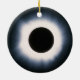 Nära svartvit konstnärlig syn på en total solförstoring, som visar den ljusa glöden från sol korona som strålar från bakom fullt måne blockerande bild.