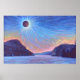 Denna Solar Eclipse-målning visar 2024 års elipse vid sjö Willougby i Westmore Vermont. Den är baserad på en oljemålning från den vermont bra konstnären Matthew Gauvin från Kant of Nature Studio. Coolan blandar sig perfekt i färger vid krigen och orangen med ett imponerande stil av penselarbete och brutet färg. Den rödaktiga tonen vid bergen får bergen att verka som om de glöder när måne överskuggar sol.