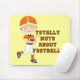 Lurar vem kärlek sporten av fotboll ska kärlek vårt totalt tokigt om fotbollT-tröja, hänger lös, muggar, kort, magneter, mousepads och andra objekt som presenterar en pojkefotbollsspelare i en orange hjälm och enhetligt.