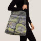 Stenvägg. Staplade stenar i olika former. Grått-stenar är täckta med grönt och rödmoss (lichens).
