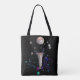 Ett centralt trumpetliknande objekt omgivet av färgfyllda sfärer och stjärnsprängningar ställs in mot en svart bakgrund. Det arrangemanga ge har en känsla av flytande eller kosmisk spridning.