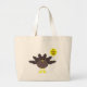 Den här tote-väskan har en lustig tecknad av en kalkon med stort svart ögon, en liten gult och svan fjädrar som fastnar. Stålen går åt motsatt håll och skapar kalkonen att se klumpig ut. Kalkonen håller en gult ballong med ett meddelande som säger "dess kalkontid". Det här är en thanksgiving party-design för roligt.