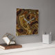 Totem: Abstrakt primitiv konst i jordnära nyanser av orange, brun, grön och beige.