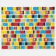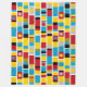 Ett mönster bestående av rand med handmålade band, block och fläckar av färg i skuggor av rött, gult, djupt guld, blått, grått svart och vitt. Inspirerad av målade leksaker.
