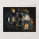 Coole Postkarte mit Totenkopf und dekorativen Rosen Motiv. Dark Art im Postkarten Format. Wähle aus diversen Papier Qualitäten. Schöne Postkarte mit goldenen Rosen und coolem Totenkopf Design.