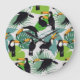 Toucan Bird: Handflatan Löv Mönster Stor Klocka
