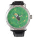 Tropiskt sömlöst mönster med löv från tukaner och bananer.