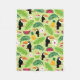 Färglöst sommarsömn, sömlöst mönster med roliga tukaner, saftiga vattenmeloner, ananas, tropiska blommor och utsökta unga kokosnötter.