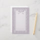 Sötpapperet har söt dammbakgrund med snöre-kantad övertäckning och söt buckaccent i pastelllavender-toner.