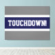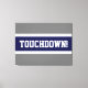 Den här sportiska fotbollsdesignen är fet TOUCHDOWN! text i ett stort marint blått center rand mot en grått-bakgrund. Texten kan vara personlig.