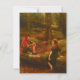 This design features a painting by the British Pre-Raphaelite artist John Collier (1850–1934). It is a richly detailed, character-driven painting that brings to life two secondary figures from Shakespeare’s play "As You Like It". Collier focuses on the unlikely romantic pairing between Touchstone, the court jester, and Audrey, a simple shepherdess. In the play, their relationship is deliberately unpoetic and humorous, a counterpoint to the idealized romances of the main characters. Collier translates and transports this contrast into visual form, creating a portrait of two people whose temperaments, social backgrounds, and attitudes toward love could hardly be more different. Touchstone is rendered with an air of intelligence and sly wit. His brightly colored jester’s costume, complete with elaborate patterns and bold tones, immediately signals his role as a fool, yet his expression also seems to make clear that he is the sharpest observer on the stage. Collier captures him in a moment of poised confidence, leaning slightly toward Audrey with a knowing, almost teasing gaze. The jester’s posture and facial expression suggest that he sees through the absurdities of both courtly and pastoral life, and that his courtship of Audrey is an amused, playful act as much as a genuine pursuit. Audrey, by contrast, is painted with simplicity and sincerity. Her clothing is plain and rustic, and Collier softens her features to convey her innocence and straightforward nature. She sits quietly beside Touchstone, her expression gentle, almost timid. Collier does not exaggerate her simplicity; instead, he allows her modesty to speak for itself, creating a character who is kind, humble and earnest in ways completely unlike her companion. Her presence in the painting brings a sense of grounded calm that balances Touchstone’s clever and playful energy. The setting, likely the Forest of Arden, is depicted with naturalistic detail, providing a peaceful woodland backdrop. This pastoral environment evokes the play’s themes of rustic escape and transformation while also highlighting the tension between courtly artifice (embodied by Touchstone) and rural simplicity (represented by Audrey). Touchstone’s wit and performative personality are seen beside Audrey’s innocence and sincerity, creating a relationship that is both charming and comically mismatched. Through careful characterization, detailed costuming, and a harmonious natural setting, Collier translates Shakespeare’s comic subplot into a vivid and thoughtfully composed image that highlights the enduring appeal of these two unconventional lovers. The original artwork of "Touchstone and Audrey" was painted by John Collier in 1890.