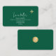 An elegant business-card for a tour guide, travel agent, or any other profession related to travels... with script name and a faux gold (ocher color) airplane, on a dark green background.