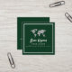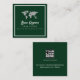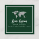 Ett elegant visitkort för en professionell som arbetar med små gruppresor.. kartläggning av världen, logotyp, skriptnamn, yrke och ytterligare information... mörk grön bakgrund med tunn vit ram.