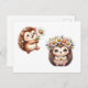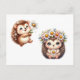 Tow cuteRomantic Floral Hedgehog Duo Illustration Vykort