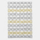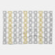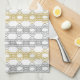 En elegant mönster med geometriska former i silver och guld, som är sammanlänkade med en rad linjära, snöre-strömmare.