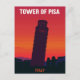 Tower of Pisa Italy Retro Sunset Vykort