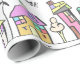 TOWNHUS SOM SLÅR IN PAPPER FÖR HAUSEWARMING-GÅVOR PRESENTPAPPER
