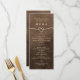 Enkel, elegant, rustik träbröllopsmeny med romantisk falsk guldråg hjärta och modern kalligrafisk skrift.