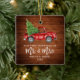 Rustic Wood Brush skrev vår första jul som Mr och Mrs. - Vattenfärgsfärgad Vintage Red Lastbil Ornament - Square