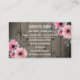 Lantlig wood look, rosa blom- sociala massmediavisitkortar för bröllopsfixaren och andra professioneller, speciellt de bröllop-släkta brölloporganisatörvisitkortar med gammala grått, blekt look, lantlig wood ladugårdplankabakgrund. Front har namn i mest blek grått, skrivar eleganten och den nedanföra yrkesmässiga titeln. Matcha smyckar nätt rosa blom- buketter motsats tränga någon. På baksidaen är affärsnamn på bästa med personlige-post, affär och celltelefonnummer, och det olika sociala massmedia kontaktar för befordrings- tillfällen liksom den personliga websiten, Facebook som anknytas, twitter, eller någon beställnings- kontakt specificerar eller information som du föredrar. Matcha lantliga wood bakgrunds- och rosablommor på baksida. Inte precis för händelseplanners, men för många yrken, speciellt förband de till blommor, vård- och skönhetaffärer, lika blomsterhandlare, hairstylists, skönhetbrunnsorter, massageterapeuter, makeupkonstnärer, hairstylists, manicurists, Etc.-underbaren för yrkesmässig nätverkande. Håll extra för att räcka ut. Perfekten för professioneller, som specialiserar i lantliga landsbyggsbröllop, ladugårdbröllop, utomhus- bröllop, trädgårds- bröllop, westerna themed bröllop, Etc. alla text, utformar, färgar och storleksanpassar kan ändras. Klicka Customize knäppas för att redigera.