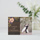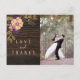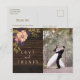 Rustik, modern, enkel trähjärtat tackkort för bröllop, med akvarell rosafärgade blommor och eget foto.