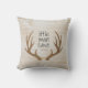 Din lilla pojke kommer att älska denna roliga kudde! Denna design har en trästruktur bakgrund, horn och anpassad typografi. Lägg till din sons födelsedatum för att fullborda looken.