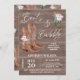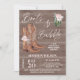 Rustic Wood Rosa Blommigt Boots och Bubly Inbjudningskort för möhippan Boots och bubbel inbjudningskort för möhippan med en cactus, cowgirl boots och några rosa blommigt-arrangemang på en fingerad träbakgrund. Den här duschinbjudan med möhippor och bubbelduschar innehåller också en del ej redigerbar modern calligraftext och textdelare.