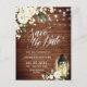 Trä Vita Rosor Rustikalen Bröllop Spara Datum Postkort.