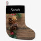 träbakgrund med gräs-konger liten julstrumpa