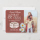 Rustik röd lada trä landsbygd spara datum med foto accentuerat med tusenskönor. Jutesk design på baksidan. Anpassa texten efter önskemål och lägg till en webbplatsadress för bröllop eller annan information på baksidan.