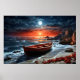 Träbåt på kustland poster