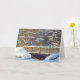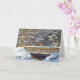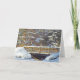 Kortet har digitalt manipulerad bild av träbron i snö med evergreen träd bakom sig. Tom inuti.