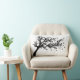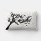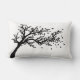 En stark svart och vit bild av en träd-böjd och blåsande i vinden som lämnar spridning i luft. En perfekt för vilken dekorfärg som helst.