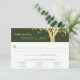 Stjärna av David Bar Mitzvah-svarskort med grönt träd och guld, komplement till vår inbjudan. Mall för val av tre middagsalternativ med två rader för gästnamn och plats för att skriva in antal gäster som faktiskt är inbjudna. På baksidan finns en logotyp med namn och datum i kurvad text.