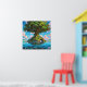 En stor träd som växer i mitten i en kropp av vatten. En strålande, sprejande träd rotade på en mystisk flytande ö. Omgiven av kristallklar vatten, prickad med ömtåliga liljor från vatten, och mot ett himmel som brinner med färg och mjuka moln, är denna teckning ett firande av liv, natur och det enastående. Ett verkligt spännande biet som för naturen till vilket rum som helst. Ett stort, gammalt träd står som centrum för denna lilla ö, komplett med en naturlig arkväg. Omgivande vatten ger reflexer och är försedd med vackra blommar, allt under ett himmel som är målat med vibrerande nyanser. Den här teckningen kan anpassas, skrivas ut och hämtas.