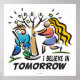 Visa kärlek för jorden och dess invånare. Denna färgstarka utformning säger "Jag tror på morgondagen" och innehåller två personer som planterar en träd. Hjälp till att främja miljövård, hållbarhet, bevarande och mor för generationen till komen! Underbar design för miljövänliga människor på jorddagen, Arbordagen eller vilken dag som helst.