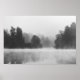 Träd försvinner i dimma ovanför sjö poster