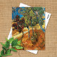 Bra art post-impressionist vycard, Träd i Asylum Garden (1889), en oljemålning av den nederländske konstnären Vincent van Gogh (1853-1890). Ett landskap i träd vid inresan till asyl i Saint-Remy, Frankrike, där Van Gogh frivilligt åtog sig själv i maj 1889 till maj 1890.